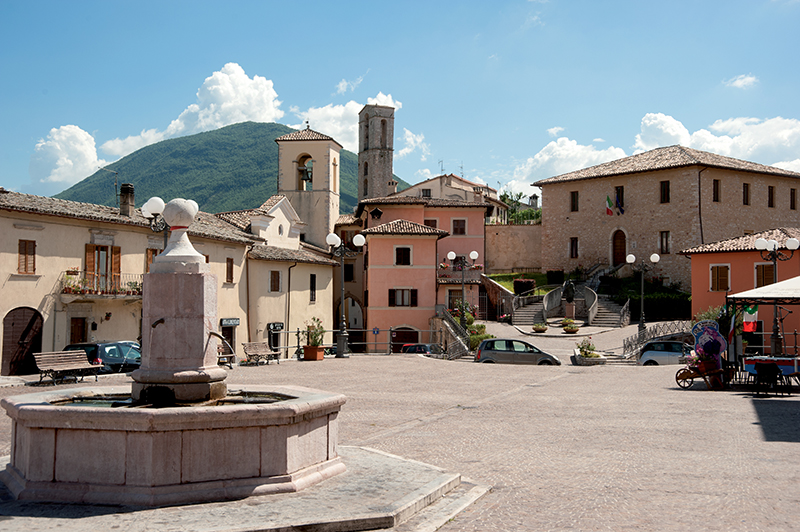 In basso scorre il Fiume Nera, l’antico Nahar, affiancato dalle forme geometriche dei prati e dei campi di fondovalle e nascosto dallo stretto bosco fluviale di salici, pioppi e ontani. In alto si erge il castello di poggio di Cerreto di Spoleto sorto a dominio delle strette valli del Vigi e del Nera,  importante  snodo per tutto il Centro Italia Gli eleganti palazzi gentilizi testimoniano la sua storia di ricchezza e potere cosi come gli insediamenti sparsi nel suo territorio fanno da indispensabile cornice a questa storia.
