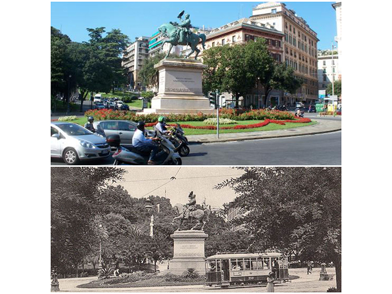La piazza si colloca in quello che era il quartiere popolare di Portoria, interessato dal piano urbanistico di Carlo Barabino (foto). Il primo intervento del 1870 realizza via Roma e Piazza Corvetto aprendo un collegamento tra il centro cittadino e i nuovi quartieri residenziali altoborghesi di Castelletto (foto). Il rinnovamento urbano era motivato dall'esigenza di provvedere alla sistemazione degli ormai antichi e insufficienti assi viari della città (foto). Convergono qui infatti la circonvallazione a monte, le gallerie in direzione delle "strade nuove" e le principali arterie del capoluogo, tra cui: Via Assarotti, Via Roma, Via Palestro. Oggi la piazza è uno dei cuori pulsanti del centro storico genovese; qui passavano le prime linee di tramway elettrici, inaugurata nel 1893. Ad oggi sotto la piazza passa la metropolitana che collega Brin alla stazione Brignole.