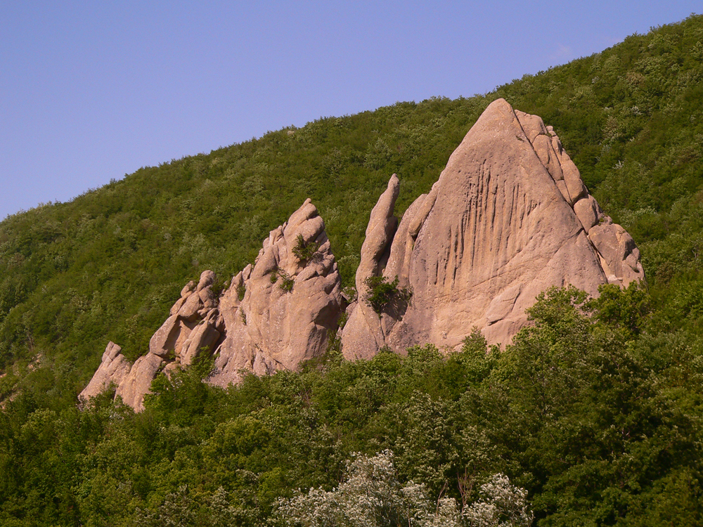 Serie di nude guglie rocciose che emergono improvvisamente dal bosco. E’ il risultato dell’erosione di uno strato di conglomerati e arenarie del Cretaceo superiore (circa 75 milioni di anni fa) caratterizzato da una giacitura subverticale. Il nome deriva da una credenza locale che li vuole tracce lasciate dal Diavolo in fuga davanti alla croce di un santo eremita. In passato la parte arenacea della formazione fu scavata da scalpellini locali per ricavarne pietra ornamentale di pregio utilizzata in edifici storici della zona. Sono un geosito di rilevanza regionale.