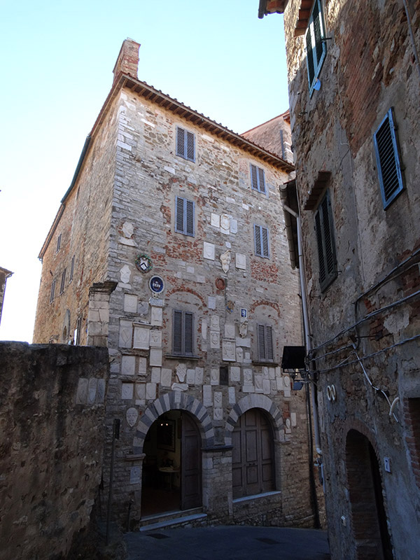 Il palazzo fu realizzato nel 1246, come testimonia un'epigrafe dell'epoca murata nella facciata. E proprio la facciata è il suo carattere distintivo con le due arcate in marmo bianco e grigio, estratto dalle cave aperte storicamente in prossimità del borgo, e con ben 65 stemmi dei Capitani del Popolo che nei si sono avvicendati al governo della città. Nel palazzo è stato allestito un Museo mineralogico in cui sono esposti anche campioni dei minerali del territorio campigliese.