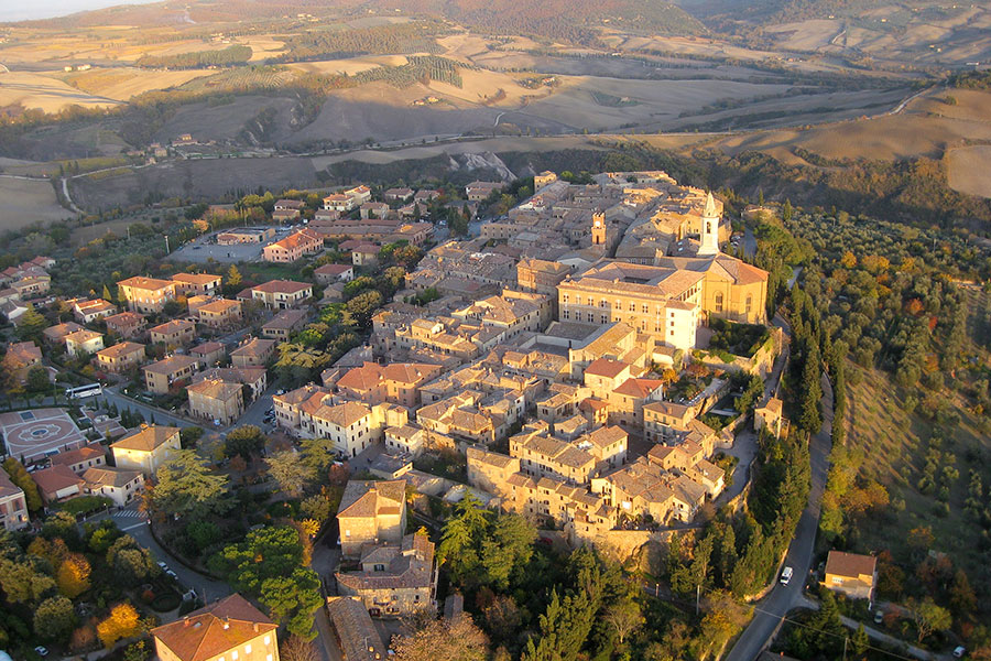 La cittadina sorse nel 1462 dalla trasformazione del borgo di Corsignano voluta da Papa Pio II, nativo del luogo, per farne la Città Ideale in cui si esprimessero i dettami del pensiero rinascimentale. Fu incaricato l’architetto Bernardo Rossellino che in solo quattro anni creò una cittadina in stile quattrocentesco, con palazzi signorili e chiese ricche di opere artistiche, il cui punto focale era la piazza dedicata a Papa Pio II. Pascoli la definì nata da un pensiero d'amore e da un sogno di bellezza.