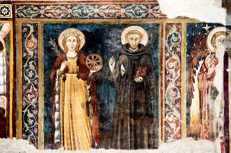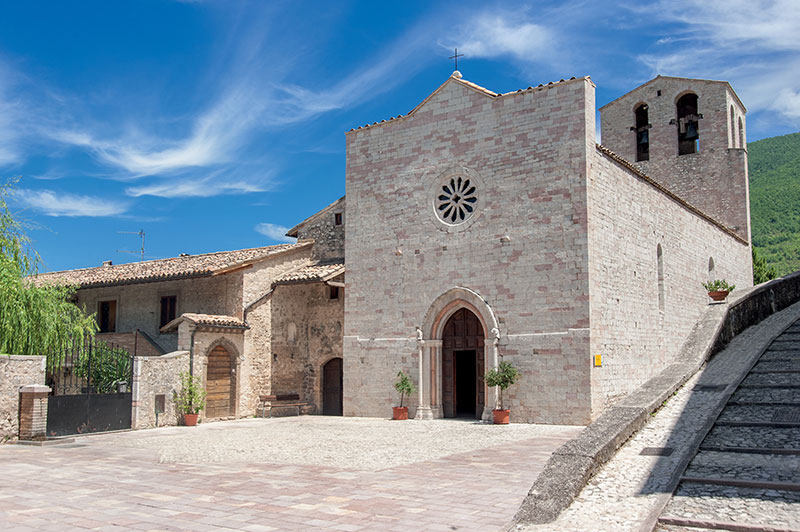 La chiesa, sorta verso la fine del sec. XIII, era in origine dedicata a San Francesco è racchiusa dalla cinta muraria di Vallo di Nera, con cui confinava. Ripete il tipo della Chiesa francescana ad una navata, coperta a capriate e terminante in una profonda tribuna; è priva di transetto e di cappelle laterali alla tribuna. La facciata è in linea con il romanico spoletino; è in pietre conce, termina al centro con una cuspide ed è arricchita dagli ornamenti del portale ogivale a strombo e del rosone.
