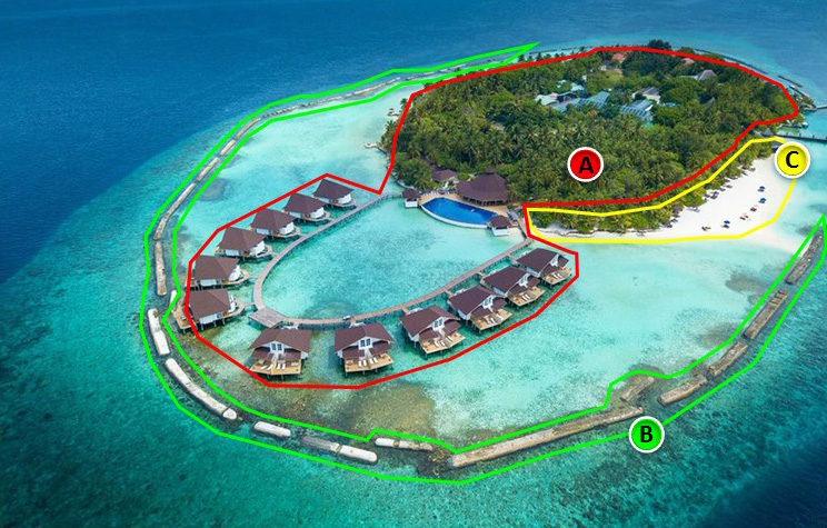 Il paesaggio dell’atollo di Elaidhoo, uno dei molti atolli delle Maldive trasformati in resort turistici, evidenzia l’impatto che tali trasformazioni spesso comportano sull’ambiente naturale. Le infrastrutture finalizzate alla funzionalità del resort sono state progettate con l’intento di stabilire un rapporto diretto con la natura dell’isola e trasmettere così l’idea di poter soggiornare in un vero paradiso tropicale. Per perseguire questo concetto, la vegetazione originaria dell’isola è stata sostituita con le palme da cocco, più gradevoli per il turista e soprattutto più rispondenti proprio all’immagine di paradiso tropicale promossa dall’industria turistica. Tuttavia, la rimozione della vegetazione naturale, composta per buona parte da mangrovie, ha innescato processi erosivi responsabili della progressiva scomparsa della spiaggia, elemento fondamentale per garantire l’attrattiva turistica dell’isola. Per contrastare l’erosione l’atollo è stato circondato da muri di contenimento che, però, non solo rischiano di compromettere ulteriormente l’equilibrio ecologico della laguna, ma danneggiano inevitabilmente quell’immagine di naturalità su cui si basa l’idea stessa di paradiso tropicale che si è tanto ricercata.