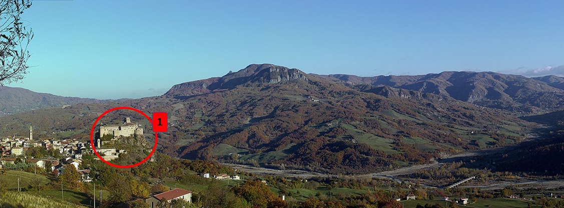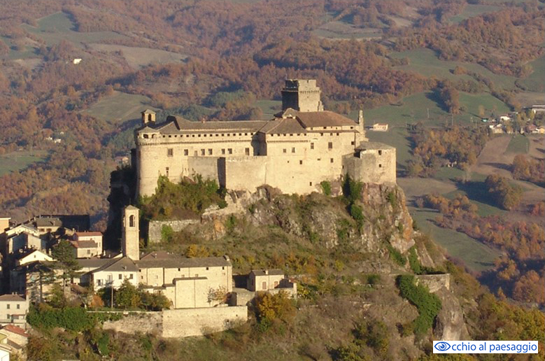 L’origine del paese di Bardi risale al VII sec. d.C., quando la zona era sotto il dominio longobardo, e il suo sviluppo è probabilmente legato al fatto che la valle era un’importante via di transito che collegava Pavia, capitale del Regno Longobardo, con la Lunigiana, e quindi con i territori della costa tirrenica. Il paese è dominato dal castello omonimo, costruito in posizione favorevole per il controllo della valle su uno sperone di roccia particolarmente tenace che emerge isolato da terreni più friabili. La prima testimonianza scritta del castello risale all’869 ma, dopo aver subìto molti rimaneggiamenti nel corso dei secoli, deve il suo impianto attuale (1) ai Marchesi Landi, che lo realizzarono nel XVI sec. Il castello è aperto al pubblico. Al suo interno è stato allestito il Museo della civiltà valligiana che espone oggetti della cultura materiale e testimonianze della tradizione locale risalenti al XIX e XX secolo.