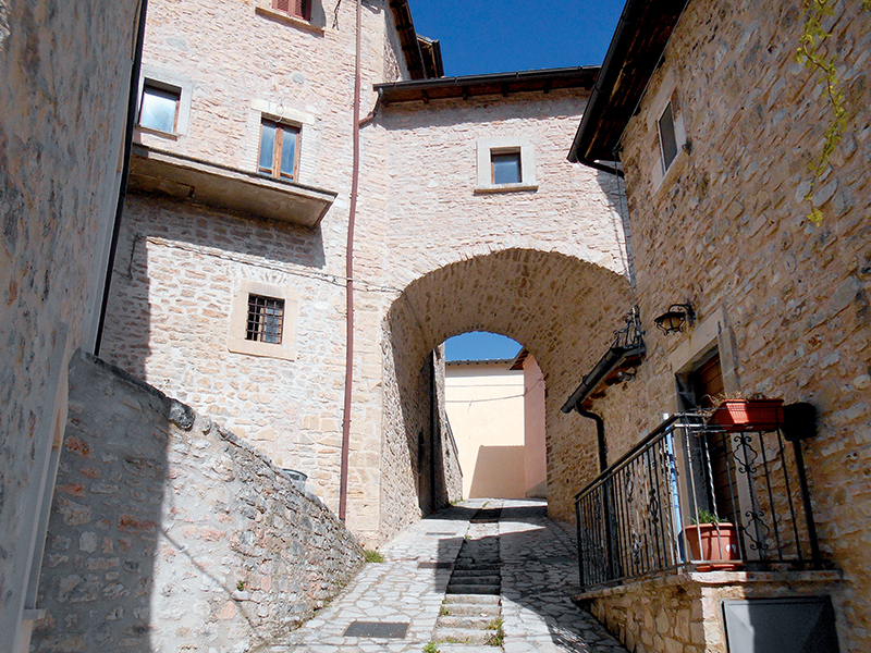 Lungo il versante orientale del Monte Coscerno, arroccato su uno sperone di roccia nella tipica posizione dei castelli di poggio sorge Poggiodomo, che vanta due primati: è uno dei più piccoli comuni d`Italia ed è il comune più alto in quota della Valnerina. Poggiodomo si affaccia sulla Valle del Tissino, che si presenta come una profonda incisione nella montagna. L`andamento lineare del torrente è sottolineato dal perfetto allineamento dei centri di Usigni, Roccatamburo e Poggiodomo.