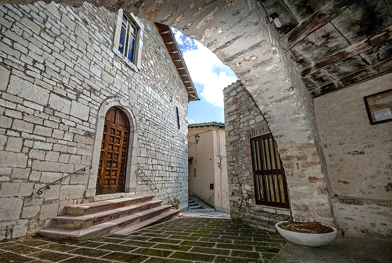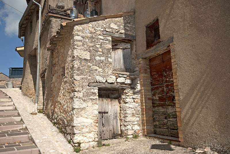 Mucciafora, frazione Comune di Poggiodomo, sorge sul crinale di una collina in posizione di guardia sulle circostanti valli. L`impianto è caratterizzato da una strada di spina che si svolge ripidamente a gradinate e da strade trasversali curve. Tale impianto Urbanistico è chiaramente percepibile nonostante recenti interventi di espansione dell’abitato e la costruzione di una nuova strada che cinge l`antico centro a nord. Il tessuto edilizio di Mucciafora è omogeneo nella zona attorno alla Chiesa di San Bartolomeo.