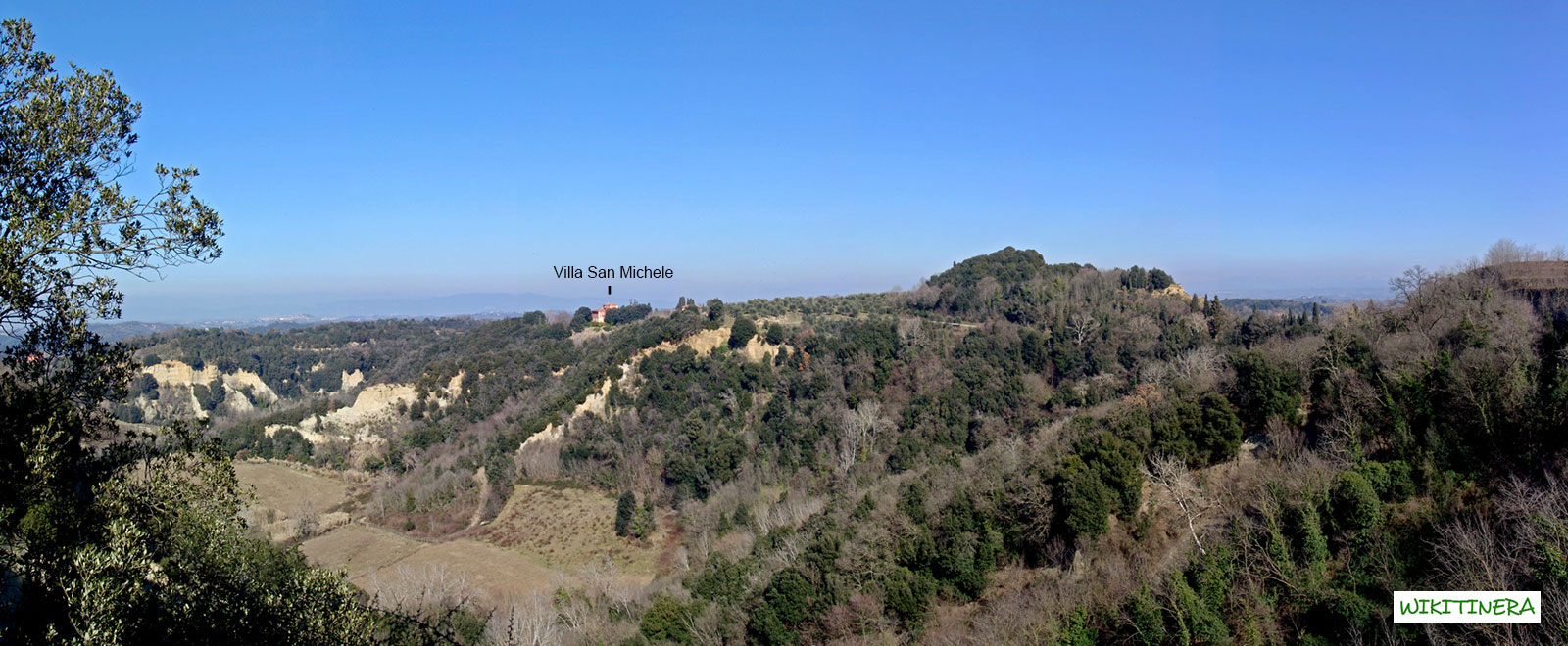 Serie di dirupi che bordano la valle del Roglio, con pareti verticali alte decine di metri che aprono nel bosco profonde ferite prive di suolo. Il fenomeno è causato dal naturale processo erosivo che smantella progressivamente le parti più alte dei versanti. In tale contesto paesaggistico la presenza dell’uomo è limitata ai coltivi di fondovalle e alla settecentesca Villa San Michele, sulla sommità del versante. L’accesso al bordo dei dirupi è molto pericoloso e richiede la massima attenzione.
