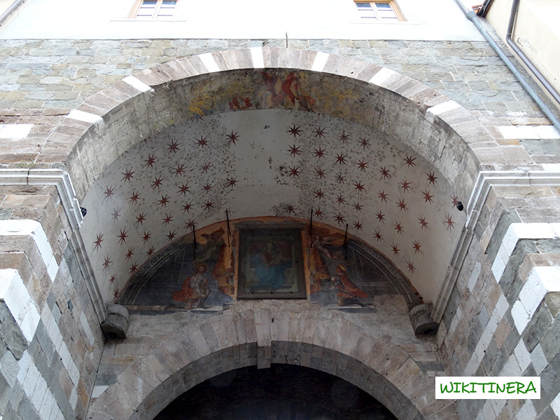 La Porta l’elemento più importante di ciò che resta della cerchia muraria duecentesca. E’ compresa tra due torri circolari ai cui lati si dipartivano le mura, ora scomparse. E’ formata da un arco esterno e uno interno più alto, a cui si connette tramite un terzo arco ribassato. La lunetta tra l’arco interno e quello ribassato è affrescata con una Madonna col Bambino e due santi. Uhn tempo la porta era dotata di un ponte levatoio sul fossato che corre tuttora lungo le mura.