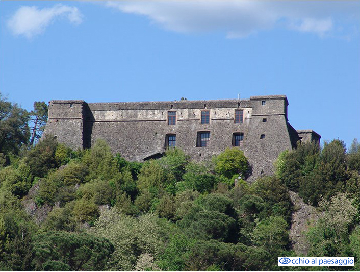 Fortezza realizzata nel XV-XVI sec. forse dai Malaspina a controllo della rete stradale della Lunigiana. Sembra che il nome derivi dal colore della pietra lavica usata per costruirla, che forma uno sperone roccioso alla confluenza del Torrente Aulella con il Fiume Magra.  La fortezza fu progettata adottando tecniche innovative di architettura militare per far fronte agli attacchi con cannoni (1). Passata più volte di mano, da piccoli feudatari agli Spagnoli, fino ai Borbone, all'inizio del XX sec. fu trasformata in residenza signorile dai coniugi inglesi Waterfield.  La fortezza è visitabile e ospita il Museo di Storia Naturale della Lunigiana. Nella sue vicinanze è sorta Aulla, la più importante cittadina della zona.