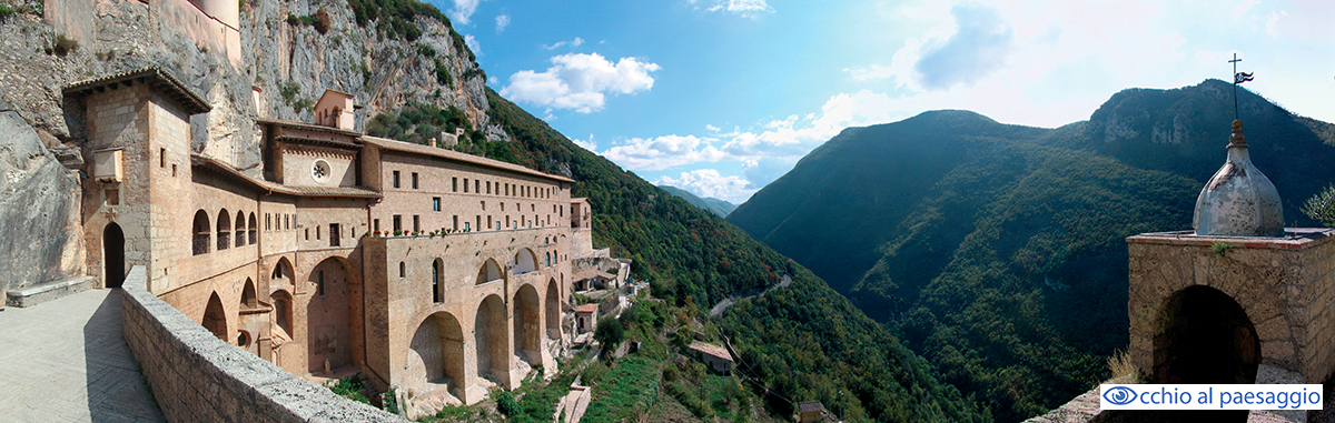 Il Monastero di San Benedetto, meglio noto come Sacro Speco, si affaccia sulla boscosa Valle dell’Aniene. In questo luogo il futuro San Benedetto da Norcia visse per tre anni da eremita in una grotta alla base della parete di roccia che fa da spalla all’attuale edificio monastico. Qui maturò l’idea della sua “Regola” che avrebbe stilato successivamente e che segna la nascita del monachesimo cristiano occidentale. Scrisse a proposito Ferdinand Gregorovius, storico tedesco del XIX sec.:“Da questa selvaggia solitudine fra i monti brulli, ebbero origine tutti i Monasteri che sotto forma di colonie della Chiesa romana, si sparsero per tutta l’Italia, la Germania, la Francia, e anche per la lontana Britannia.”