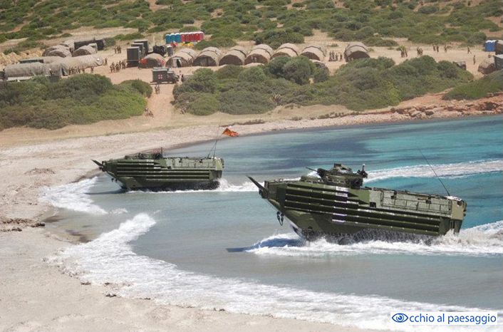 Poligono militare istituito nel 1956 nell’ambito degli accordi con la NATO che comprende un vastissimo territorio tra Porto Pino e Teulada. Con i suoi 7200 ettari di estensione, è la seconda più grande installazione d’Europa dove gli eserciti della NATO conducono guerre simulate con largo uso di munizioni di ogni tipo (1). Una servitù che oltre a impedire la fruizione pubblica di oltre 750 kmq di mare produce enormi danni all’ambiente, tali da compromettere l’uso dell’area anche nell’auspicabile caso di un futura rimozione del vincolo militare.