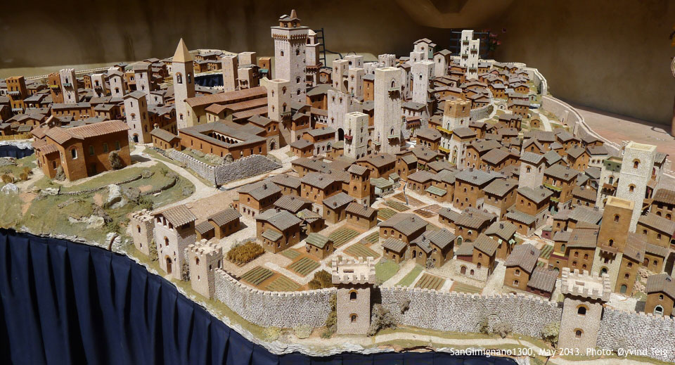 San Gimignano 1300 è un museo, una esposizione, un viaggio nel tempo, è arte, storia, ricerca, è una magica visione di torri, piazze, palazzi, di botteghe, di genti, di fede, è il desiderio di esaltare questa incredibile città medievale, testimonianza vivente di tradizione, cultura e civilizzazione. L'itinerario è stato concepito per dare al visitatore emozioni ed informazioni sulla storia di San Gimignano nel periodo di maggiore sviluppo e splendore (tel. 327 4395165).