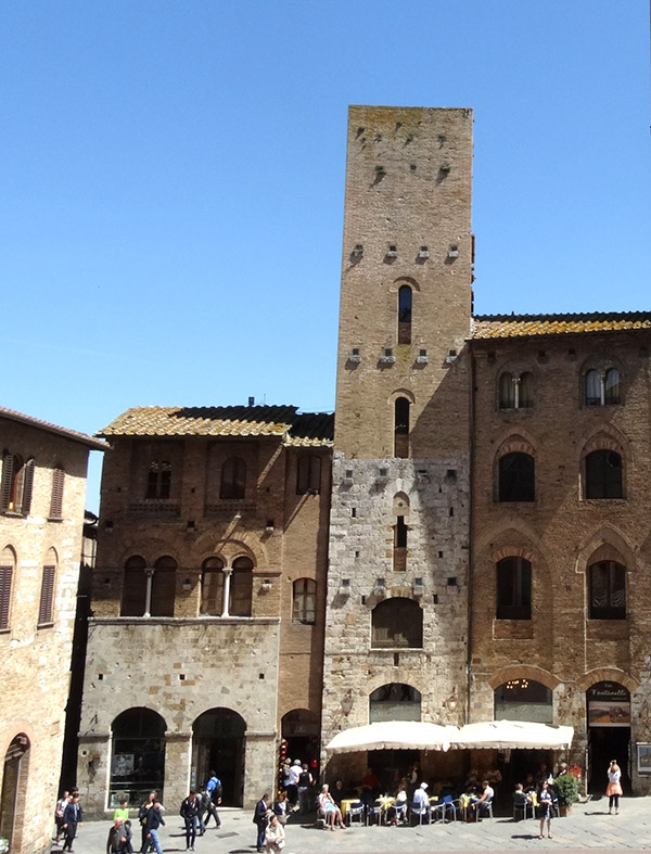 Nota anche come Torre Useppi, dalla famiglia che la costruì nel 1280. Presenta interessanti peculiarità architettoniche tra cui la porta d’ingresso posta al primo piano, e un tempo raggiungibile solo grazie a una scala in legno retraibile. L’uso del materiale da costruzione: pietra nella metà inferiore e laterizio in quella superiore. E infine le quattro serie di buche pontaie dove si inserivano altrettanti ballatoi in legno che dovevano avere un effetto rilevante sull’estetica dell’edifico.