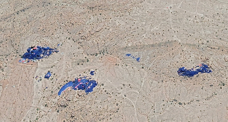 Nel 1984 l’artista belga Jean Verame, sembra in segno di tributo verso la moglie defunta, ha colorato di blu elettrico e di rosa molti massi di granito che affiorano in più punti nei dintorni della cittadina di Tafraoute. Per pitturare i massi, che si trovano sparsi su un’area estesa complessivamente oltre 50 ettari, sono state utilizzate 18 tonnellate di vernice.