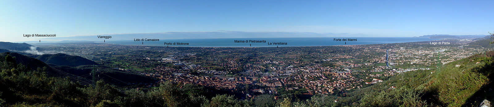 Da Capriglia si domina la piana costiera della Versilia. In passato la piana era una palude inaccessibile e l’unica via transito era la Via Francigena che correva alla base dei rilievi collinari passando per Pietrasanta. Le bonifiche del ‘700 e ’800 consentirono lo sviluppo urbano attorno agli antichi insediamenti portuali, protetti dai fortilizi di Forte dei Marmi, Viareggio e Motrone (ora scomparso), e poi l’occupazione del resto del territorio.