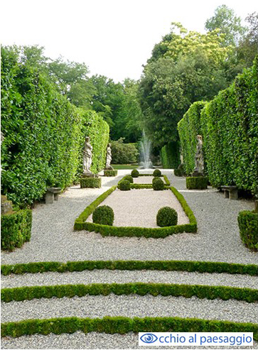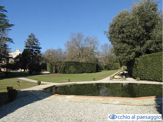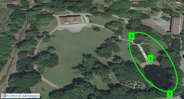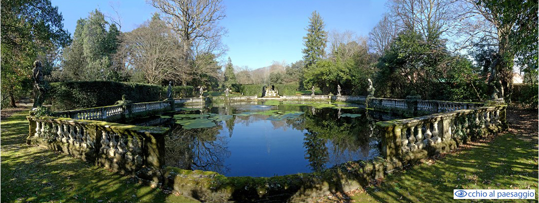 Il giardino della Villa subì nel tempo modifiche per mano di diversi progettisti. Il primo intervento strutturale risale alla metà del ‘600 e fu opera del Mazzanti, attento conoscitore delle novità riguardanti l’allora nascente architettura dei giardini, diffusa soprattutto da Andrè Le Notre, all’epoca anche lui attivo in Lucchesia. Mazzanti riporterà le tecniche romane e le ispirazioni francesi attraverso lo spirito della scenografia e della suggestione prospettica. Su questo impianto, nella prima metà del ‘700 Filippo Juvarra realizzò un tipico giardino barocco con un ampio parterre di aiole fiorite e siepi di bosso, perimetrato da quinte di verzura. Di questo impianto, oggi resta parte delle siepi di bosso (1 e 2) e la Peschiera (3).