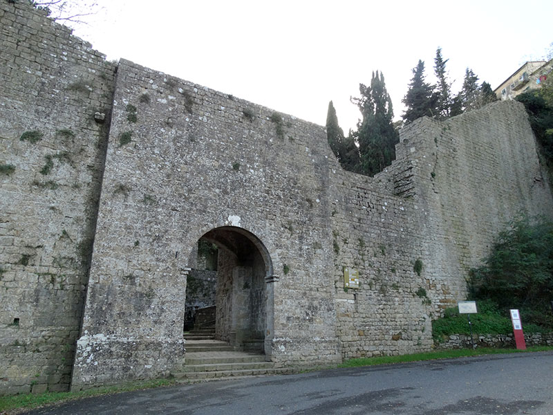 La Volterra medievale si dotò di una prima cinta muraria nel XIII sec. I lavori iniziarono con il rafforzamento delle mura etrusche ma poiché l’area interessata era troppo ampia rispetto alle esigenze difensive della città, la perimetrazione fu poi limitata ai margini del borgo. La tecnica costruttiva differì da quella adottata dagli etruschi e comportò l’utilizzo di blocchi di dimensioni decisamente minori e la creazione di fossati lungo il lato esterno dei tratti più vulnerabili.