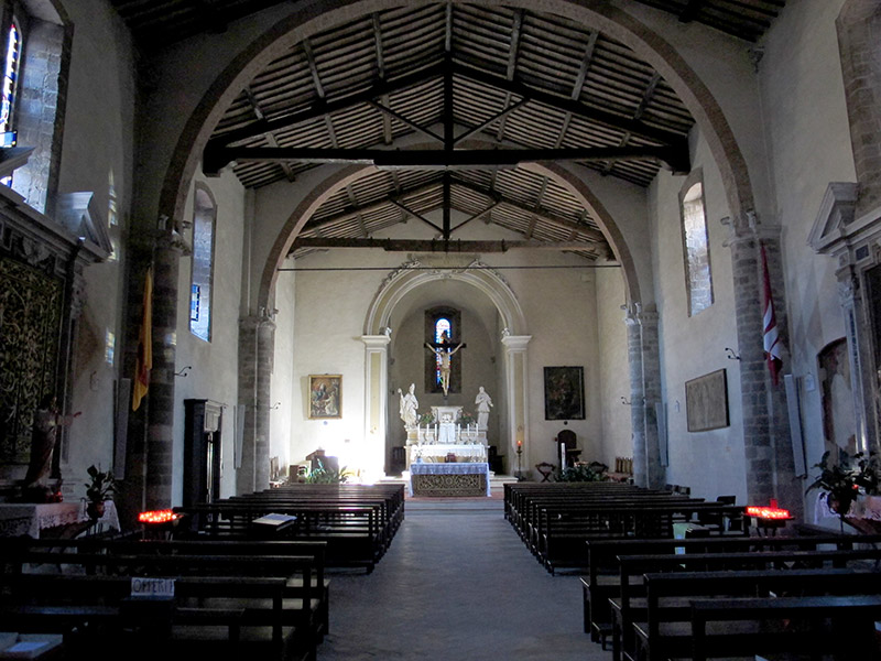 Chiesa trecentesca nota anche come Chiesa dei Senesi perché nel Medioevo fu la chiesa ufficiale della Repubblica di Siena a Montalcino. Condizione testimoniata dalla presenza dello stemma di Siena, detto balzana, sopra l’occhio della facciata. L’interno è a una navata e si caratterizza per presenza di pilastri in pietra addossati alle parteti laterali che sorreggono delle arcate di supporto del tetto. Di rilievo un tabernacolo ligneo intarsiato e un affresco del ‘300, La Madonna col Bambino e i Santi.