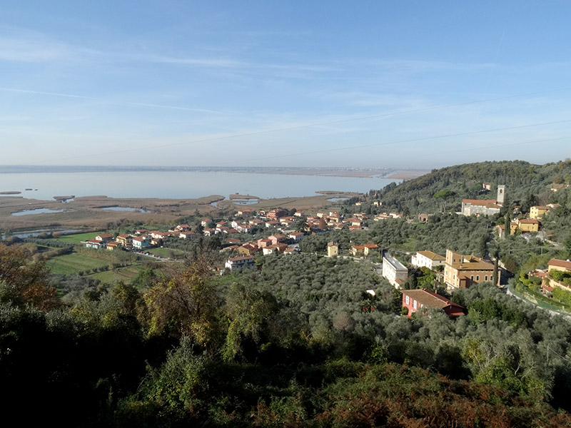La località in cui sorge questo piccolo borgo conobbe il suo massimo splendore in Epoca Romana quando fu sede di un ricco insediamento favorito dalla posizione lungo le vie di comunicazione tra Pisa, Lucca e Luni. La costruzione romana di maggior pregio è la Villa dei Venuleii, deI I sec. d.C., eretta in posizione panoramica sul lago, dove tuttora gode del suggestivo scenario naturale che dovette essere alla base della sua collocazione.